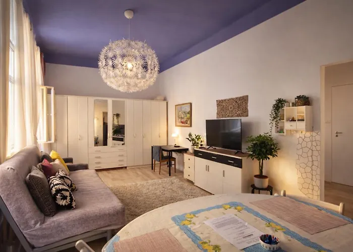 Il Modern Studio In The Heart Of Prague 1, Steps From Main Station And Old Town si trova nel distretto Staré Město (Città Vecchia) e la stazione della metropolitana Stazione Metro Muzeum è a circa 5 minuti a piedi. L'appartamento dispone di Wi-Fi e di un parcheggio privato per gli ospiti che viaggiano in auto.